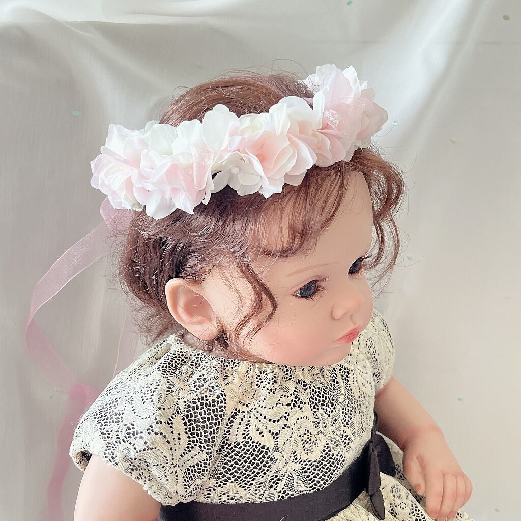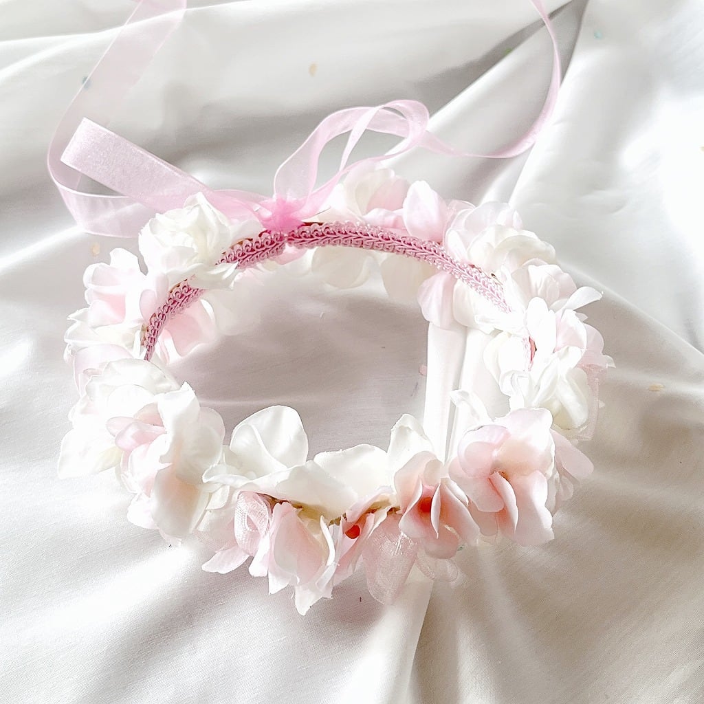 《花冠》ベビー キッズ フラワーリング 白&ピンク紫陽花 HK-57