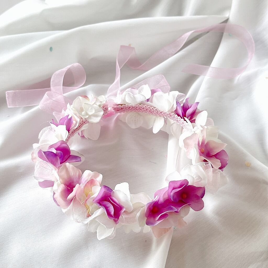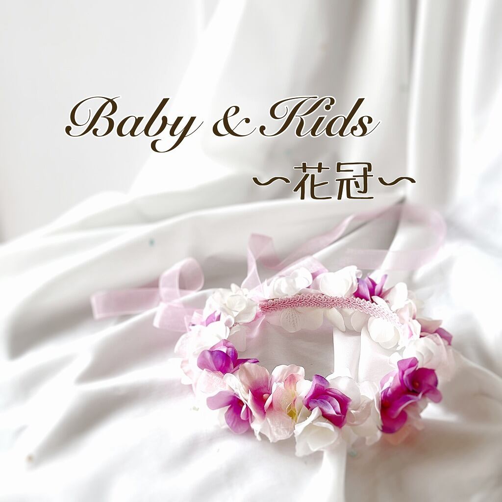 《花冠》ベビー キッズ フラワーリング 白&ライラック紫陽花 HK-58