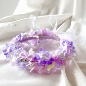 ラインストーンが光る ライラック花冠 花かんむり カチューシャ ヘアアクセサリー キッズ 子供用 女の子 ヘッドドレス フラワーガール リングガール モチーフ 髪飾り H-76