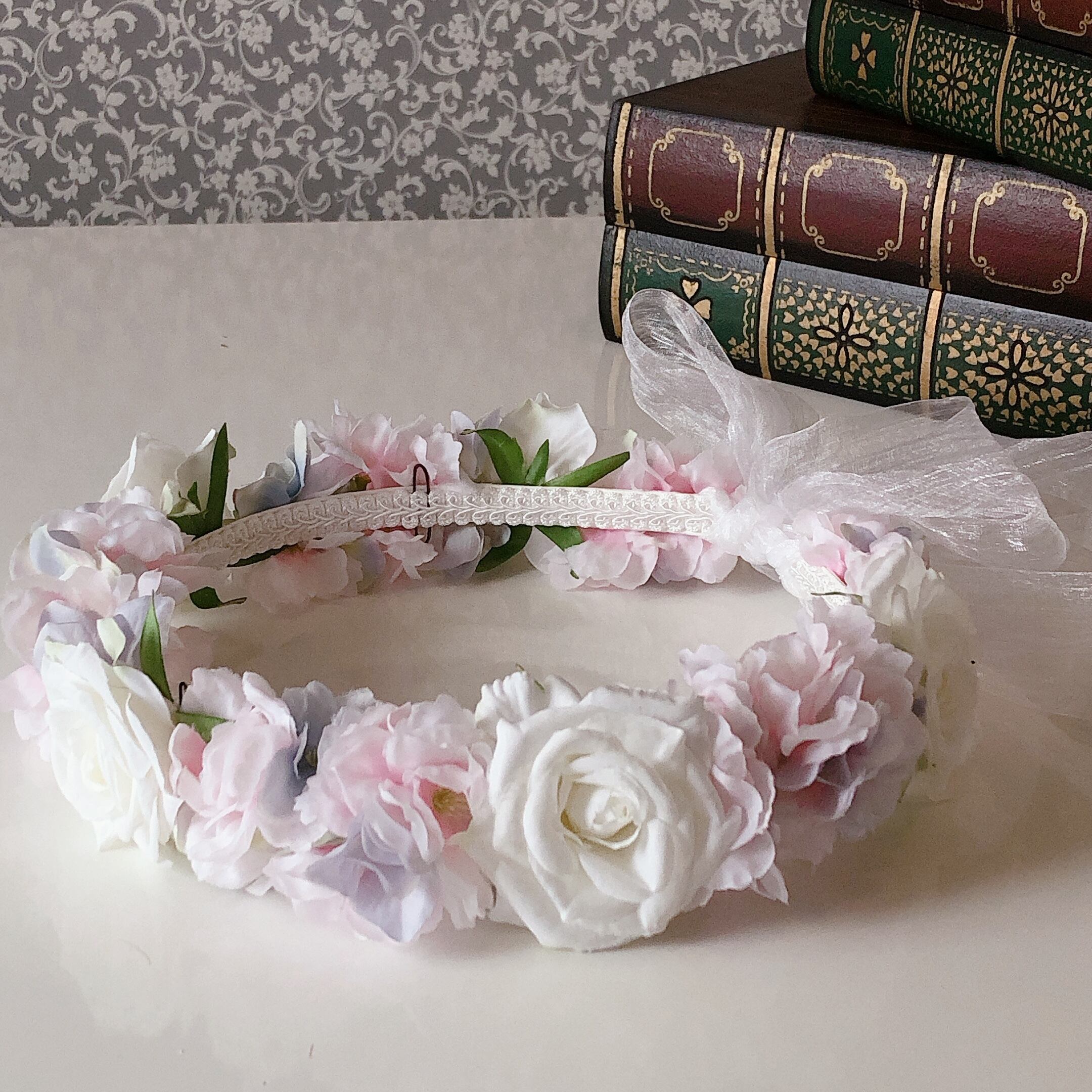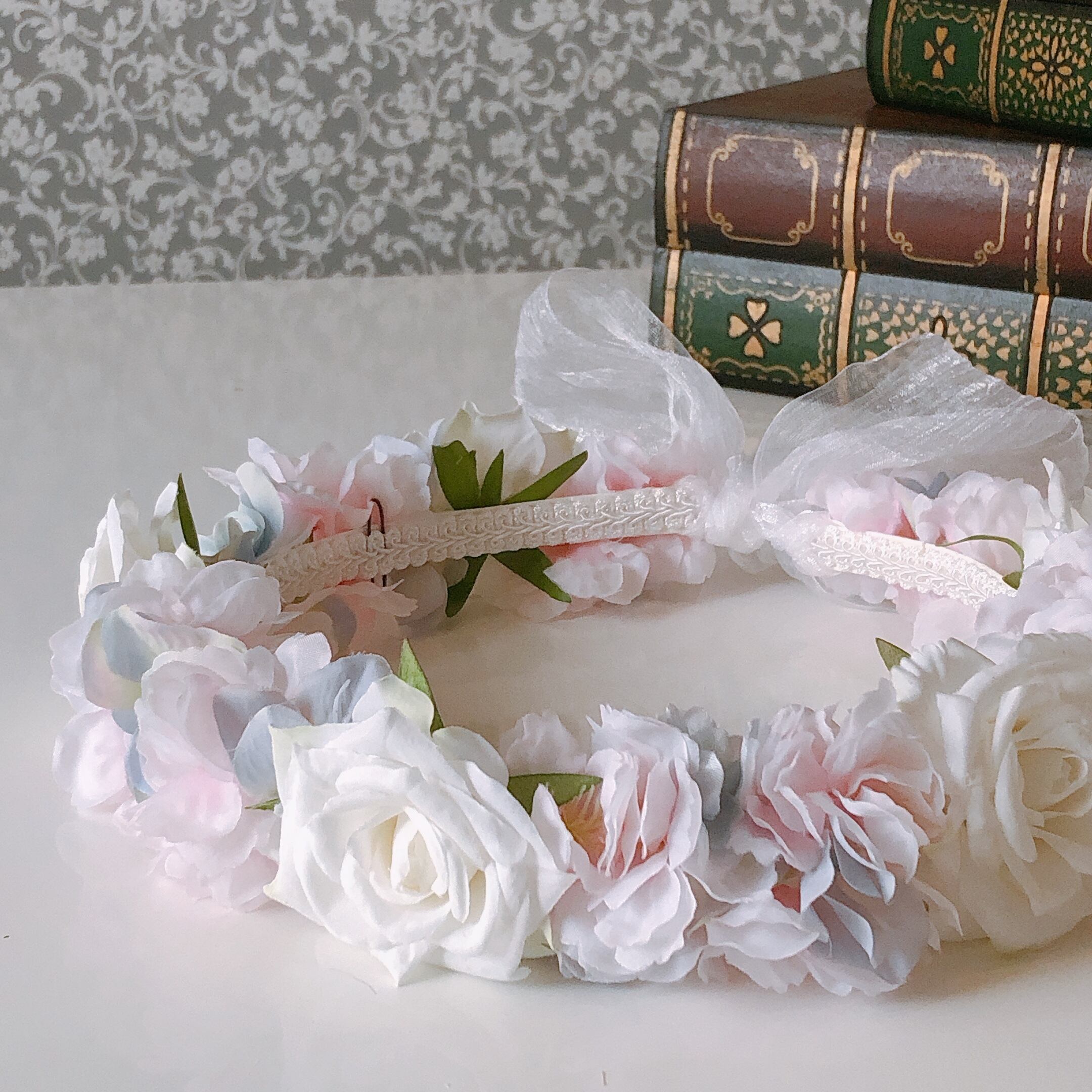 《大人サイズ花冠》 ♡ ホワイトローズ・ふわりカラー ウエディングに