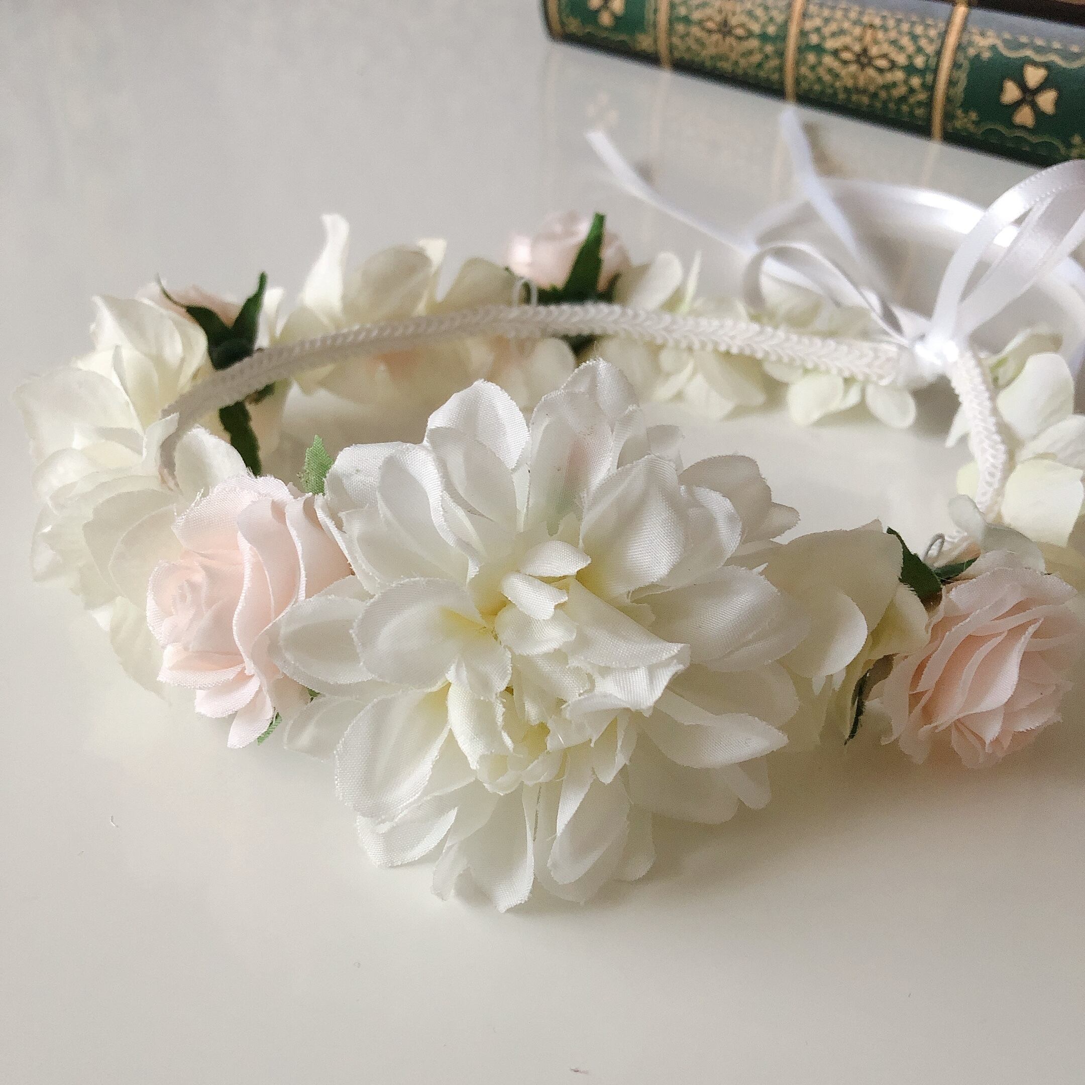 《花冠》ベビー キッズ フラワーリング ホワイトダリア・紫陽花 HK025